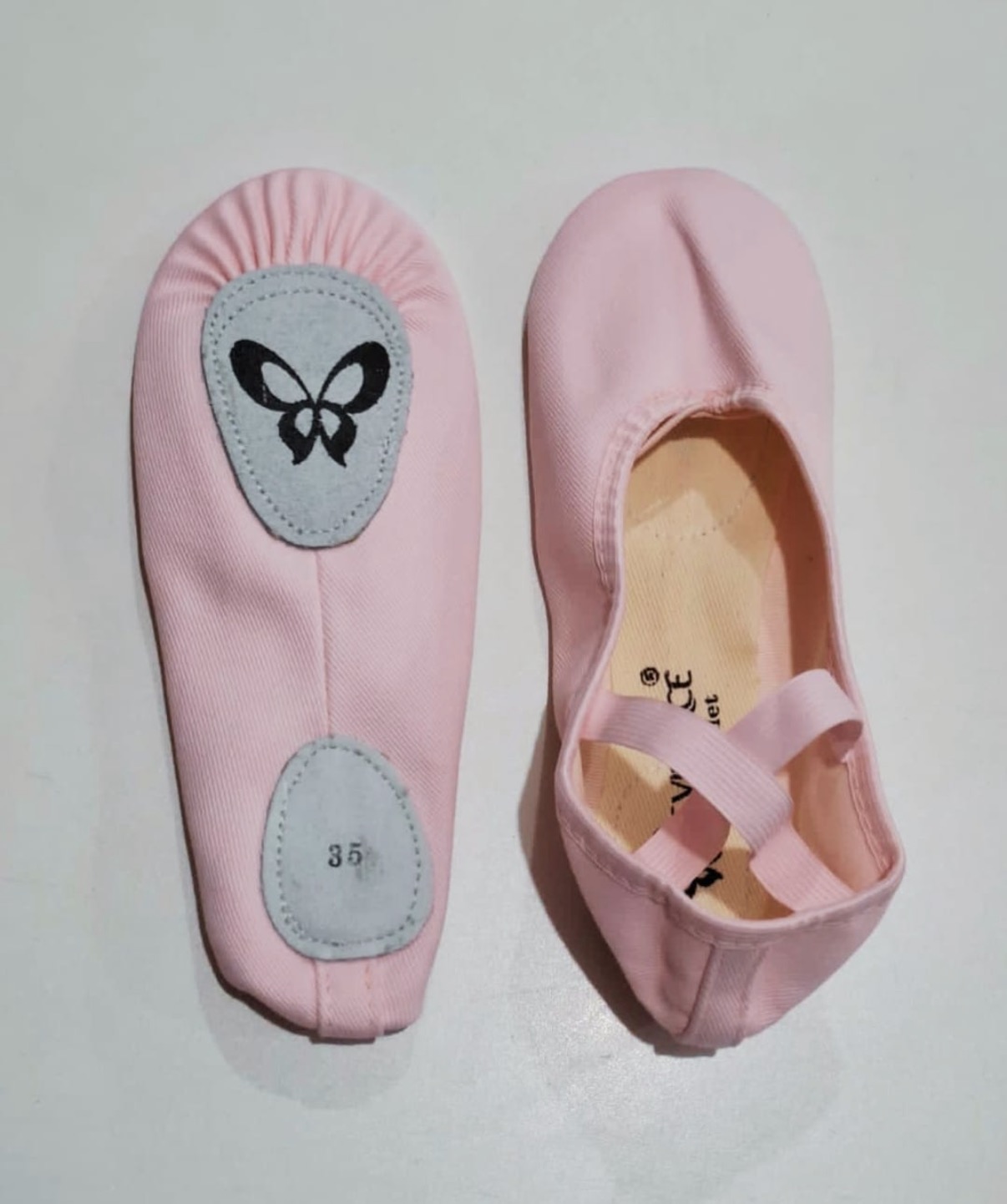 Sapatilha meia ponta infantil em lona sola dividida elástico cruzado